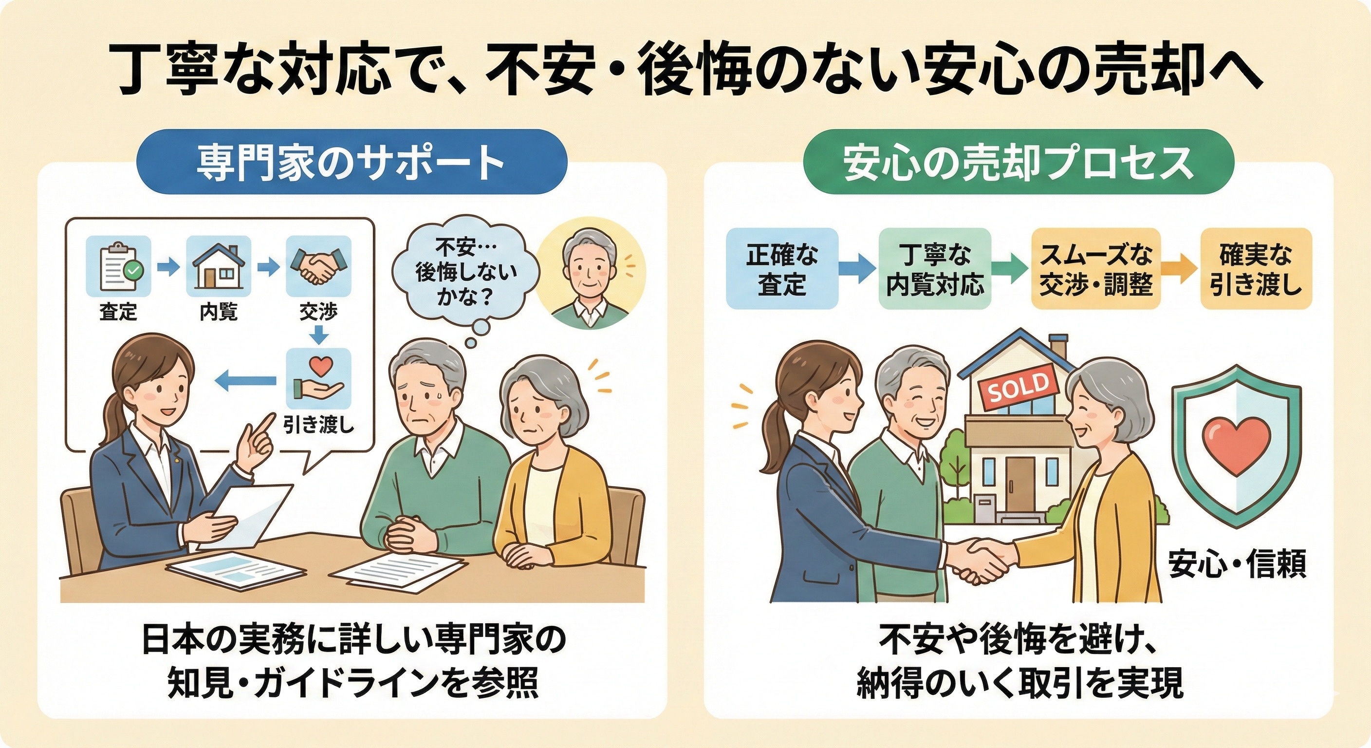 これらの対応を丁寧に行うことで、不安や後悔を避け、安心して売却を進めることができます。