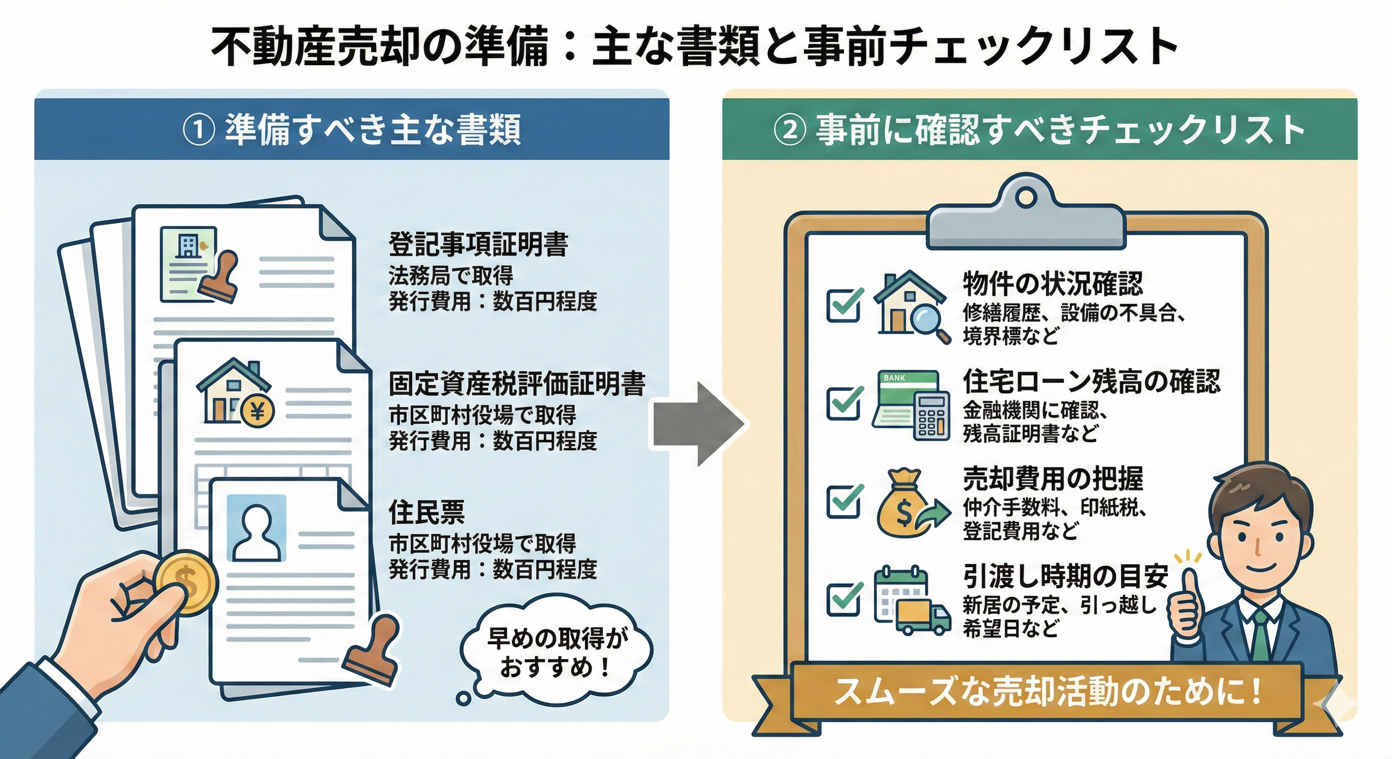 これらを事前にしっかり整理しておくことで、心構えが整い、安心して売却活動を進めていただけます。特に「後悔したくない方」にとって、費用や書類の漏れがないよう確認することが、大切な安心の第一歩になります。