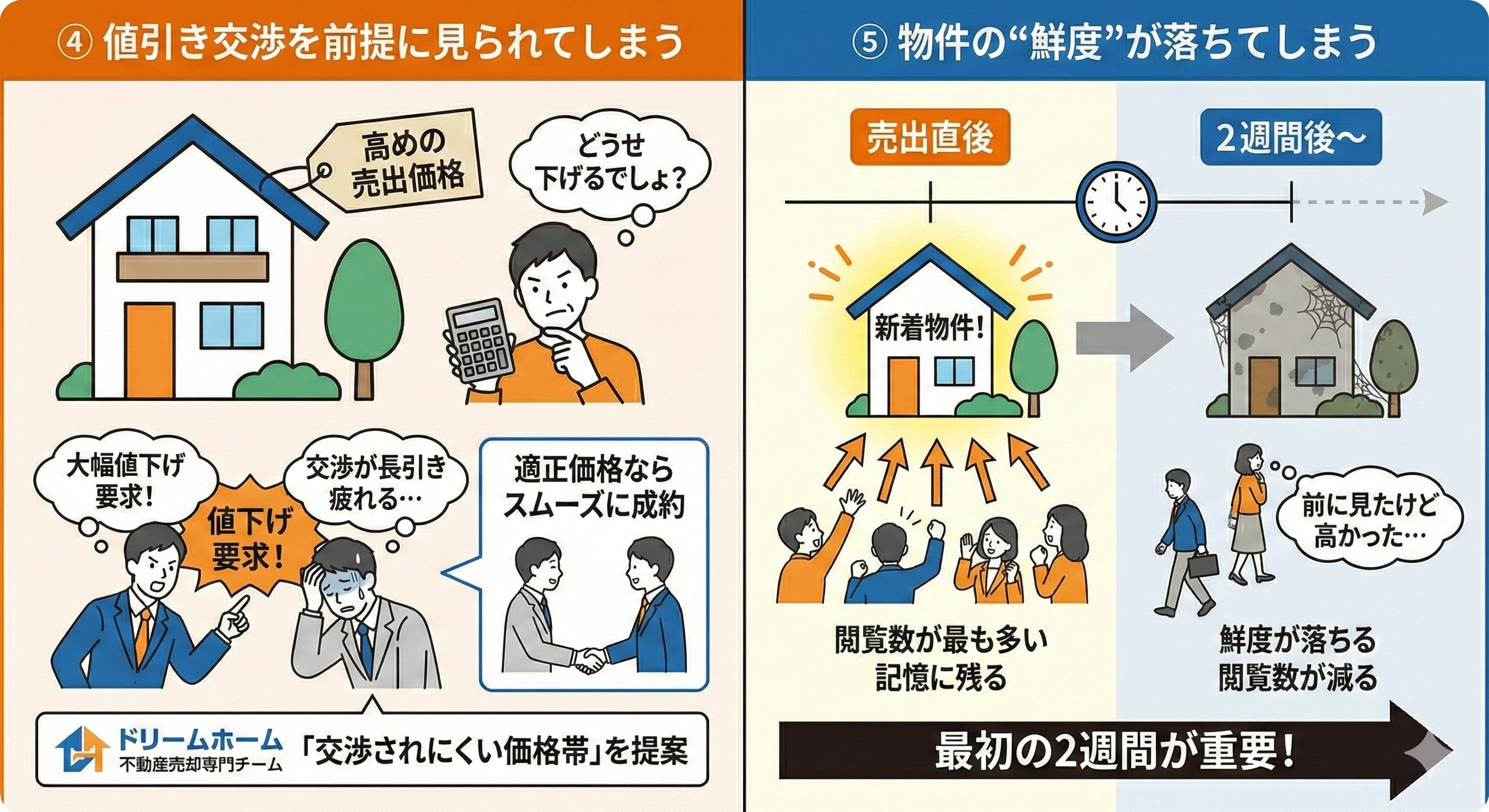 売出価格を高めに設定した場合に起こりやすい5つのリスクを解説します。